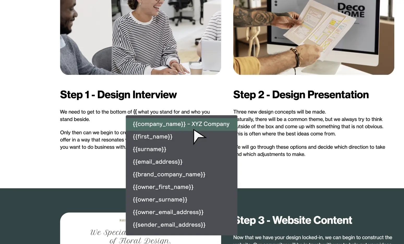 With Better Proposals, variables are actually connected to your data. Your details, your client’s information, expiry dates, and other key fields are pulled in automatically.