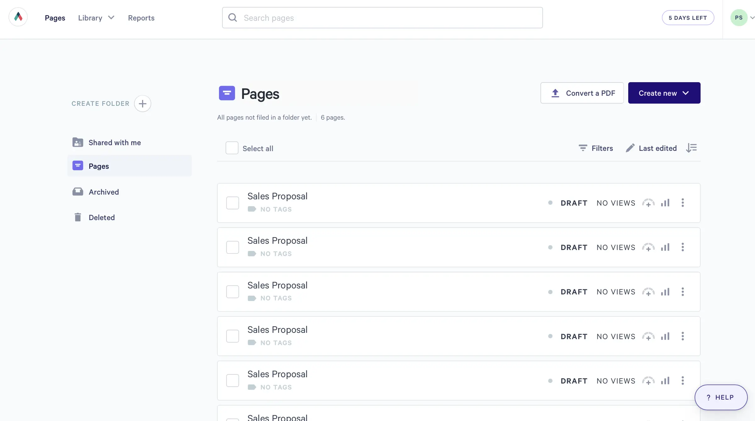 At $35/user/month billed annually, Qwilr’s Business plan will cost you $420 a year. In addition to standard features such as eSignatures or analytics, you get to send unlimited Qwilr Pages (documents), set passwords on documents, and integrate with HubSpot. What you don’t get is a Salesforce integration or the ability to set your custom domain and remove Qwilr branding.