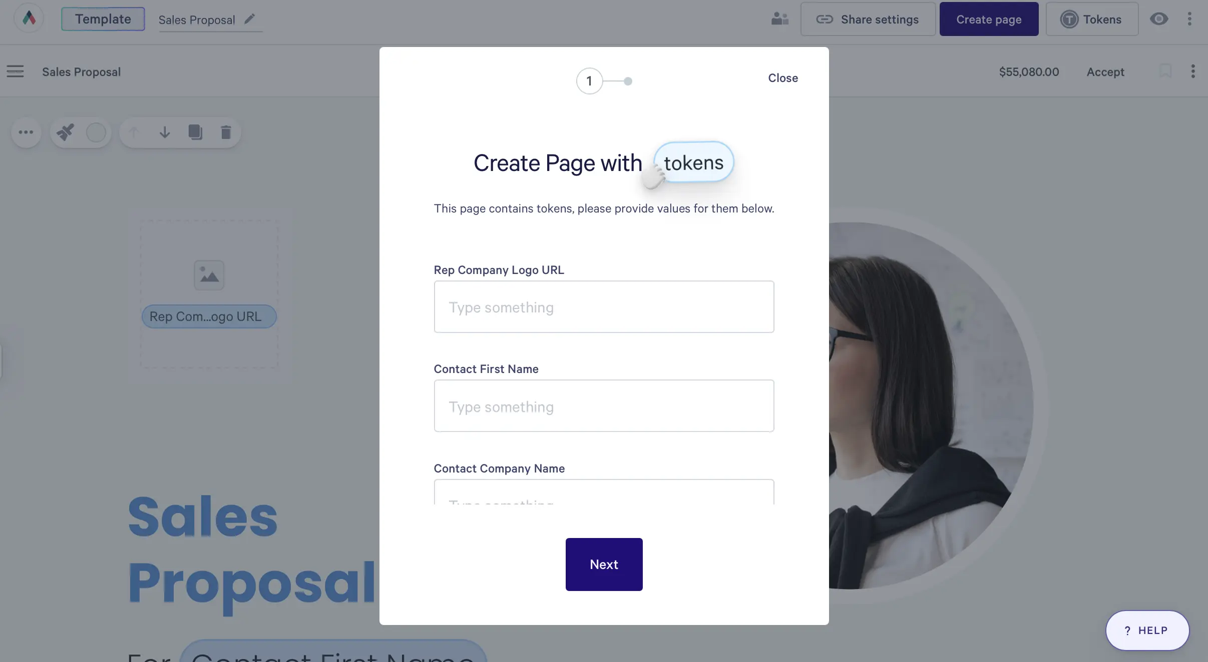 Qwilr’s account tokens give the impression of automation, but they’re essentially placeholders you have to fill in yourself. When using tokens, you'll be prompted to fill in the values even for basic details the platform already knows - like your own name.