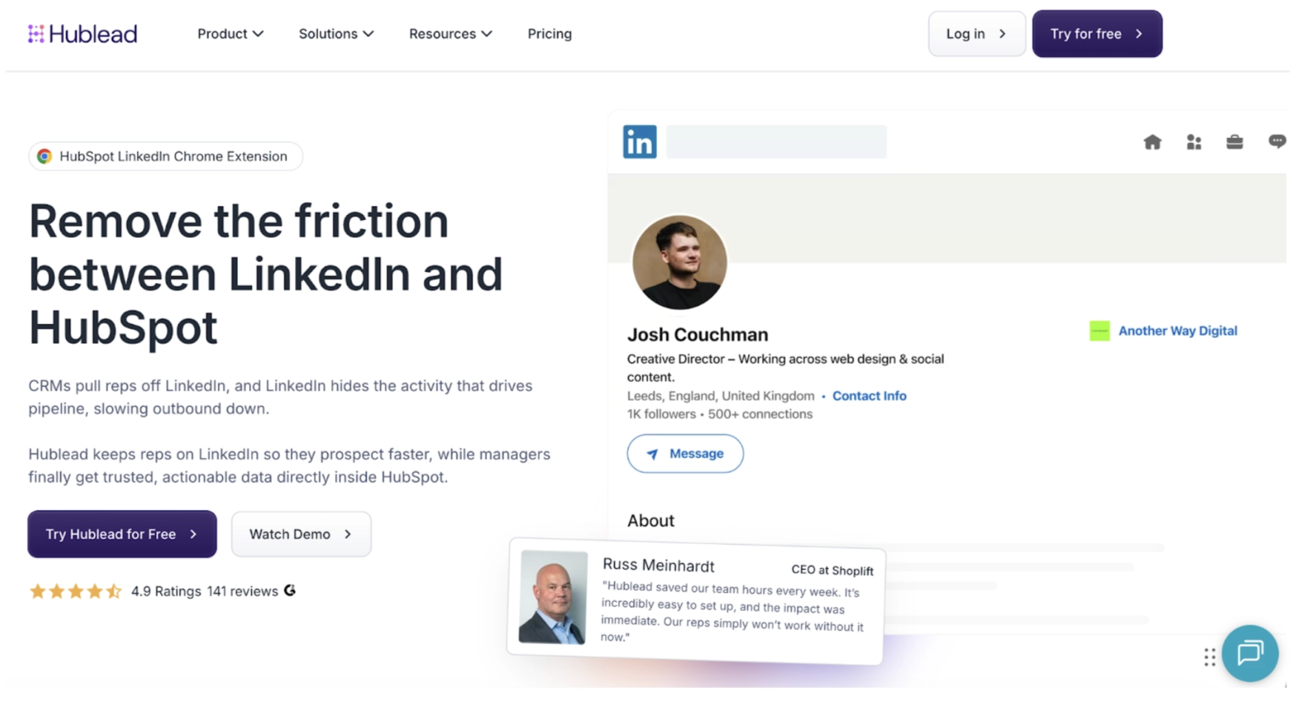 Hublead is best for sales teams that use LinkedIn a lot for outreach and want their CRM to stay accurate without having to rely on reps to log every interaction by hand.